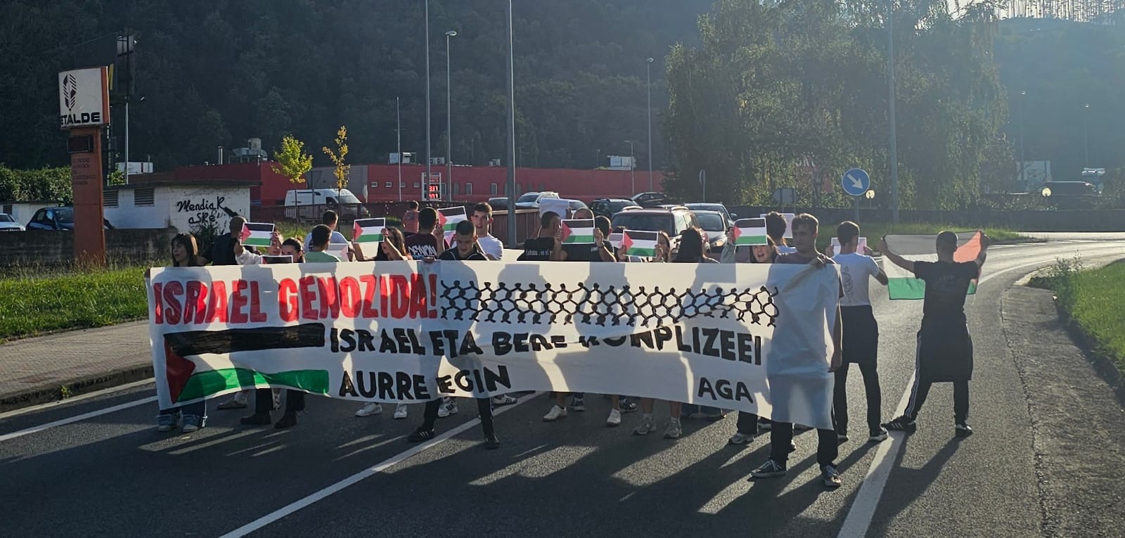 Azkoitia Gazte Asanbladak, bere aldetik, atzo gaueko gertakarien harira eta Palestinako egoera salatzeko bide mozketa bat egin du arratsaldean.