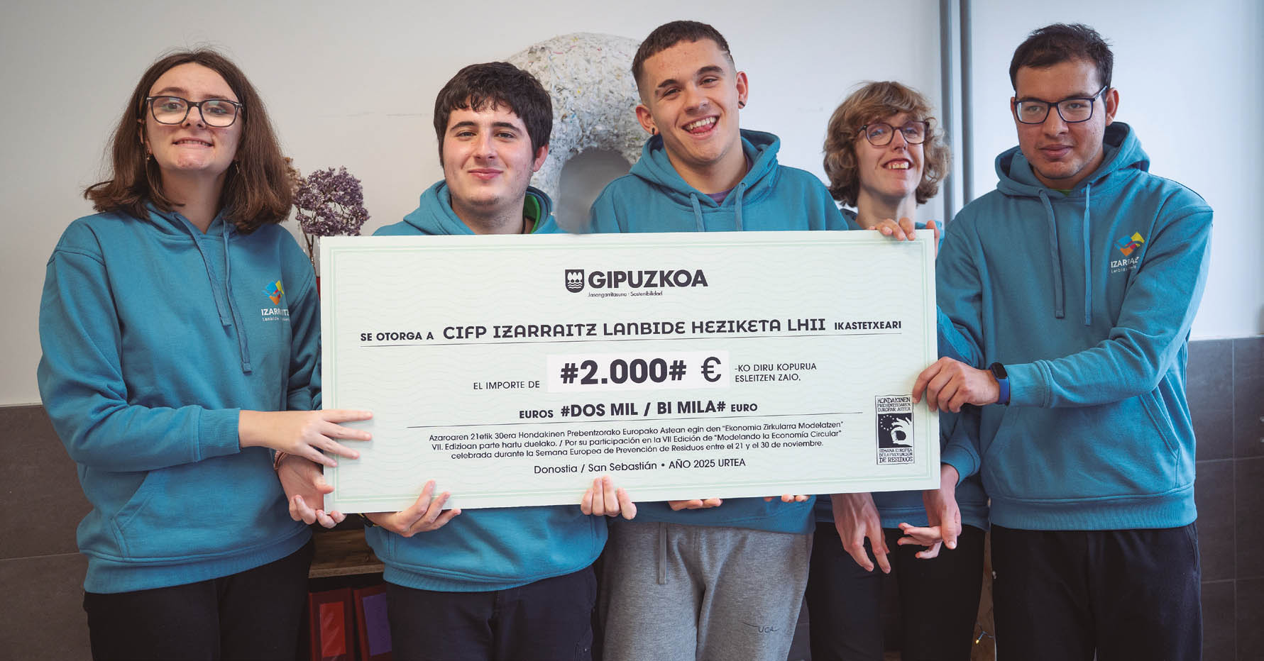 Eguneroko lanak bere fruituak ematen ditu: Gipuzkoako Foru Aldundiaren Jasangarritasun departamentuak sustatzen duen Ekonomia zirkularra modelatzen erakusketan 2.000 euroko saria lortu du ikastetxeak, besteak beste. Luken Orbegozok ondo gogoan du egun hura: "Gure zikloak lau urte irauten dituelako, lau geruzako gurpila sortu genuen, papera birrinduta, nahastuta eta forma berria emanda". Dan pozarren joan da eskulturaren aurrera, gelan baitaukate gordeta. Gainera, Euskararen Egunerako antzerki formatuan osatu zuten bideoa ikasleen gustukoena izan zen, eta sari hori ere eskuratu zuten ikasleek. Proiektu pilotuko ikasleen artean talde lanaren esentzia gailentzen da beste guztiaren gainetik.