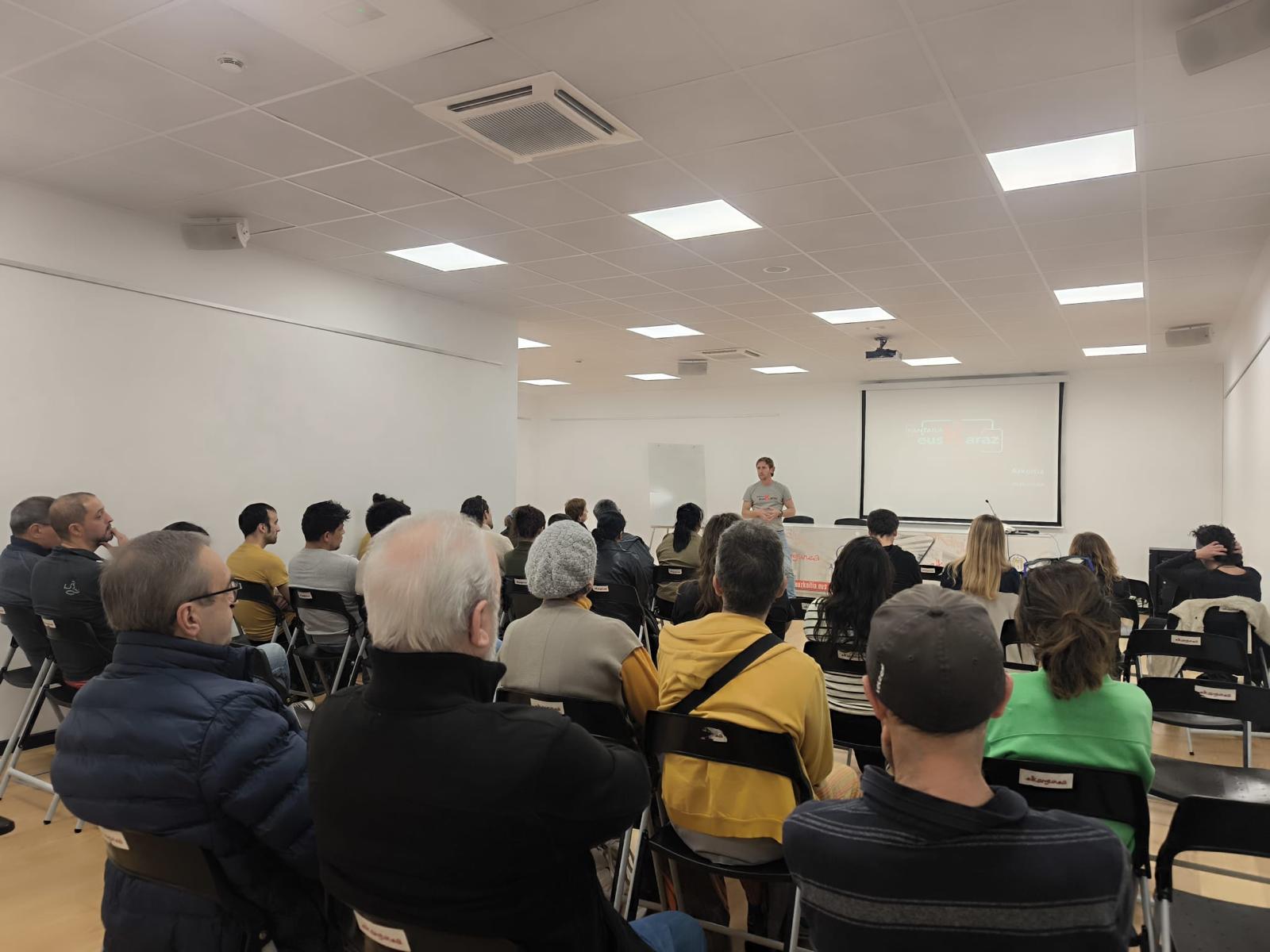 Dokumentalaren proiekzioaren ondoren, bestetik, Ioritz Gonzalez Pantailak Euskaraz mugimenduko kide azkoitiarraren txanda izan zen; hark mugimendu hori aurkeztu zuen, haren lan egiteko modua zein den azaltzearekin bat. Ikus-entzunezko edukietan euskarak duen presentzia "anekdotikoaz" eta horren ondorioez kezkatuta sortu zuten hainbat eragilek Pantailak Euskaraz mugimendua 2020an. Euskarazko eskaintza digitalak bermatu ditzaten, erakundeak mugiarazten dihardu ordutik lantalde horrek.
