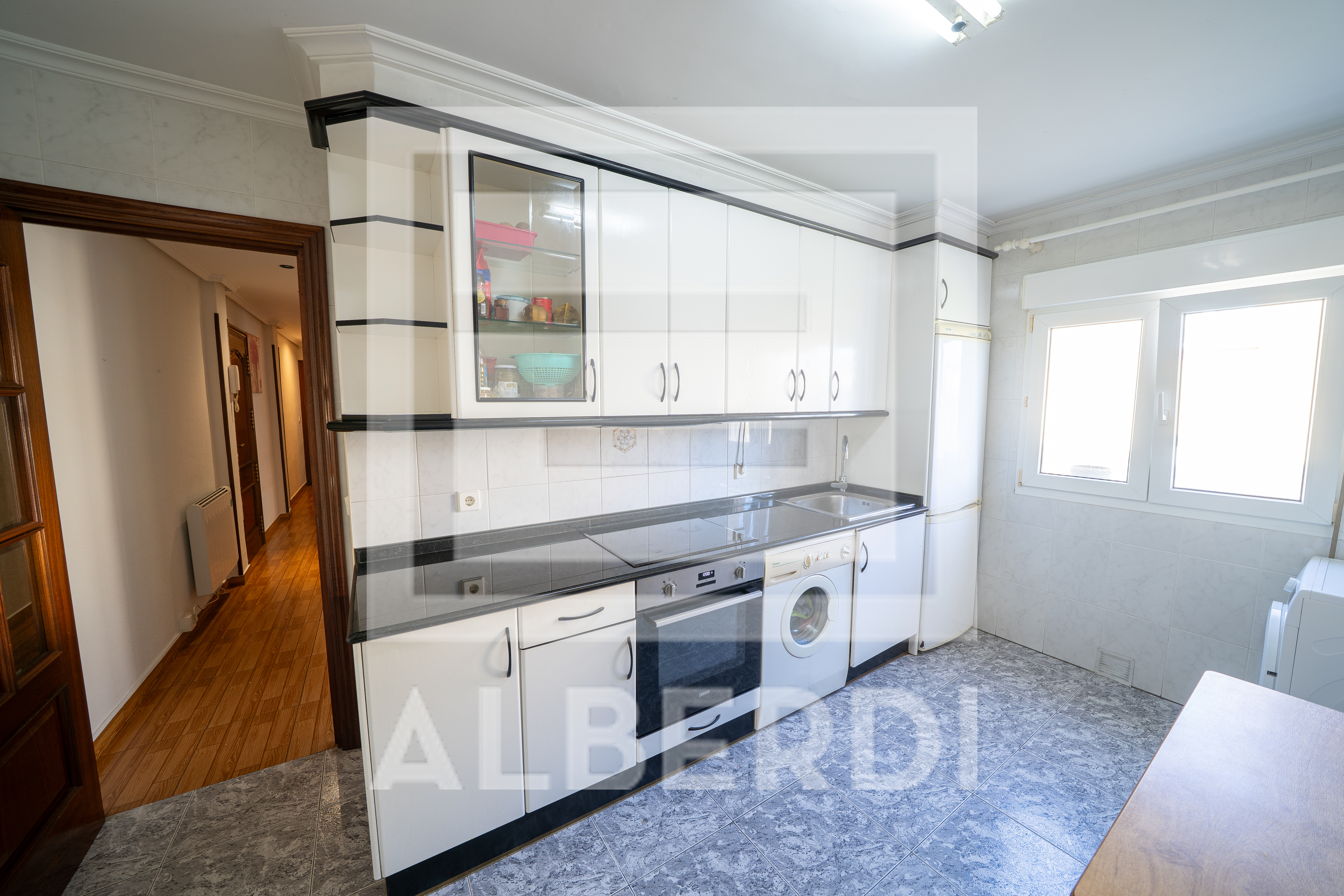 - Altzariz hornitutako sukaldea, egongela handia, kanpoaldera begira dauden bi logela eta bainugela batez banatuta dago.