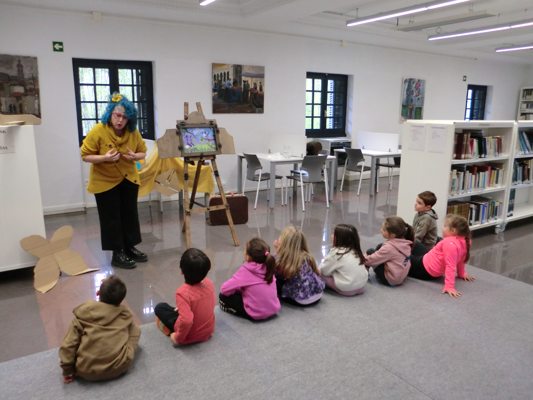Miru ipuin kontalariaren saioaz gozatzeko aukera izan zuten atzo arratsaldean Aizkibel liburutegian elkartu ziren umeek.